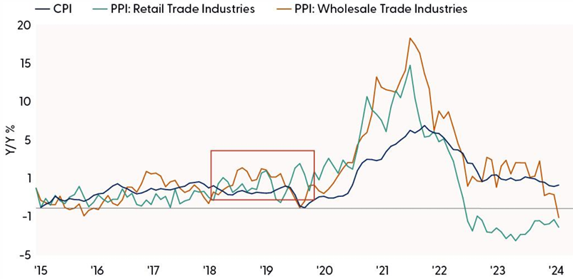 The consumer impacts from tariffs vary widely and are industry-specific, as businesses often apply for exclusions or bear part of the costs. Consumer prices surprisingly decelerated down to 1.7% in late 2019 after businesses adjusted to the trade war with China (Figure 2).